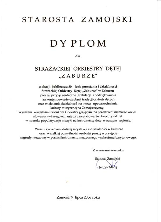 W roku 1934 Michał Krukowski został sołtysem wsi Zaburze, a obowiązki kapelmistrza przejął Paweł Smarkala.
