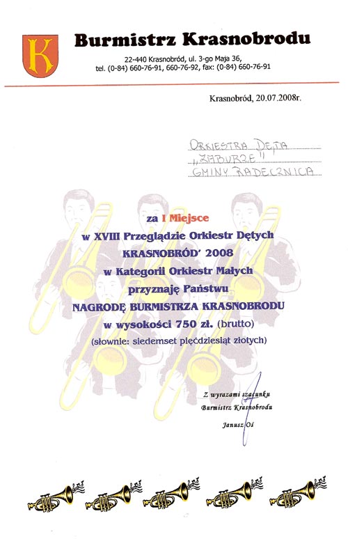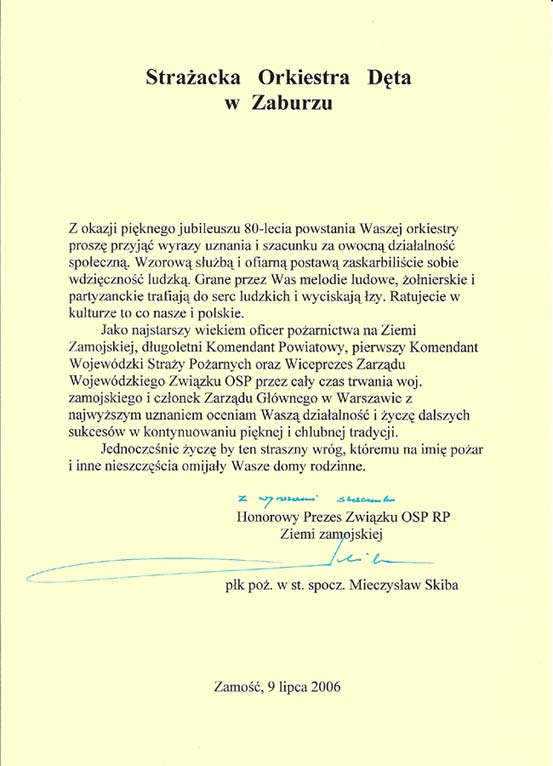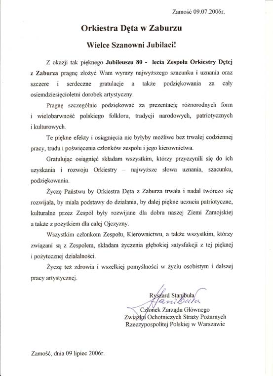 z podpisami muzyków ze spotkania w dniu 27 lipca