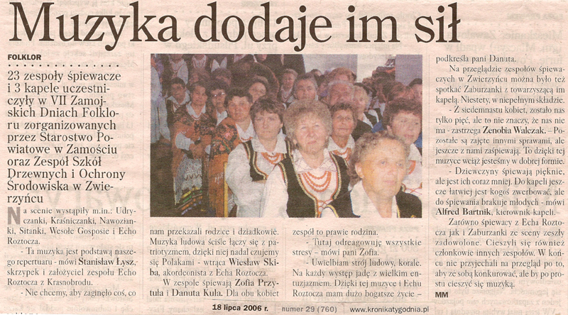 Zespół występuje na różnych imprezach gminnych, powiatowych, dożynki, festiwale,