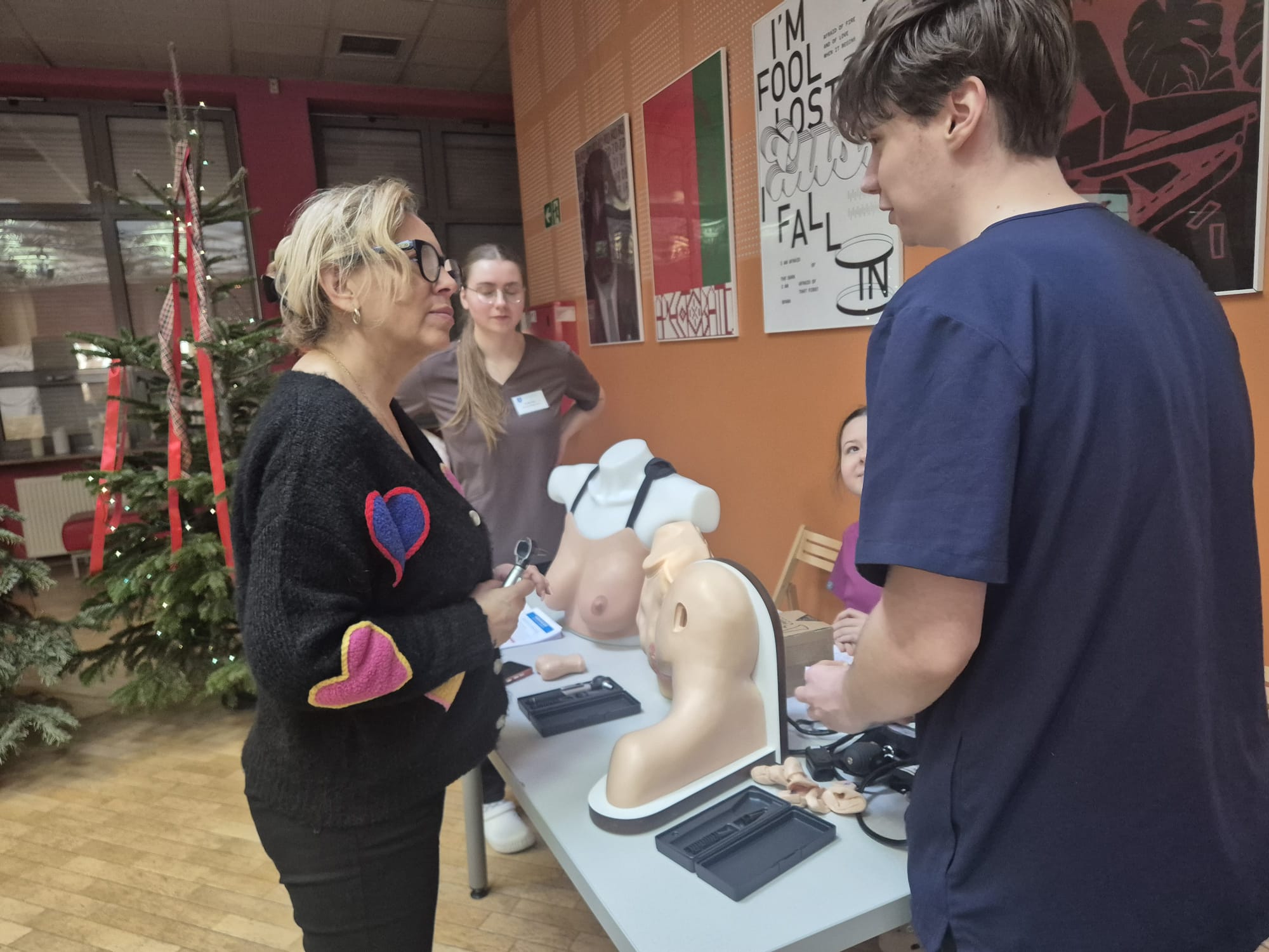 - Dr Edyta Laurman-Jarząbek przy stoisku SKN Polskiego Towarzystwa Pielęgniarskiego CM UJK z fantomami.