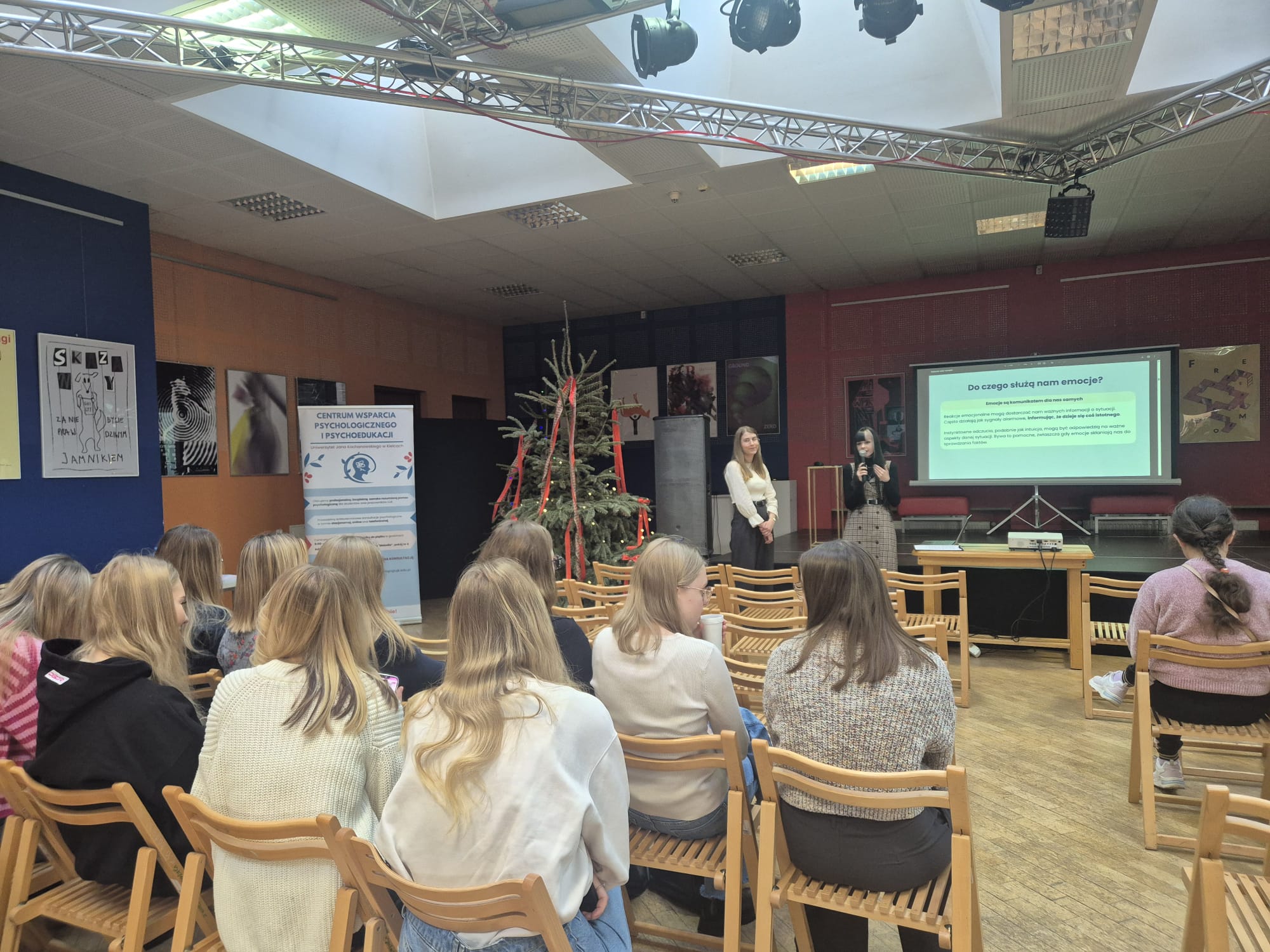 W dniach 5 listopada – 3 grudnia 2025 r. zrealizowano cykl spotkań informacyjnych dla studentów pierwszego roku siedmiu wydziałów UJK. Podczas spotkań mgr Julia Kundera oraz mgr Patrycja Krzysztofik zaprezentowały działalność Centrum, dostępne formy wsparcia psychologicznego, zasady korzystania z konsultacji oraz ofertę warsztatową. Spotkania miały na celu budowanie świadomości w zakresie dbania o dobrostan psychiczny już od początku studiów oraz zachęcanie studentów do korzystania z dostępnych form pomocy.