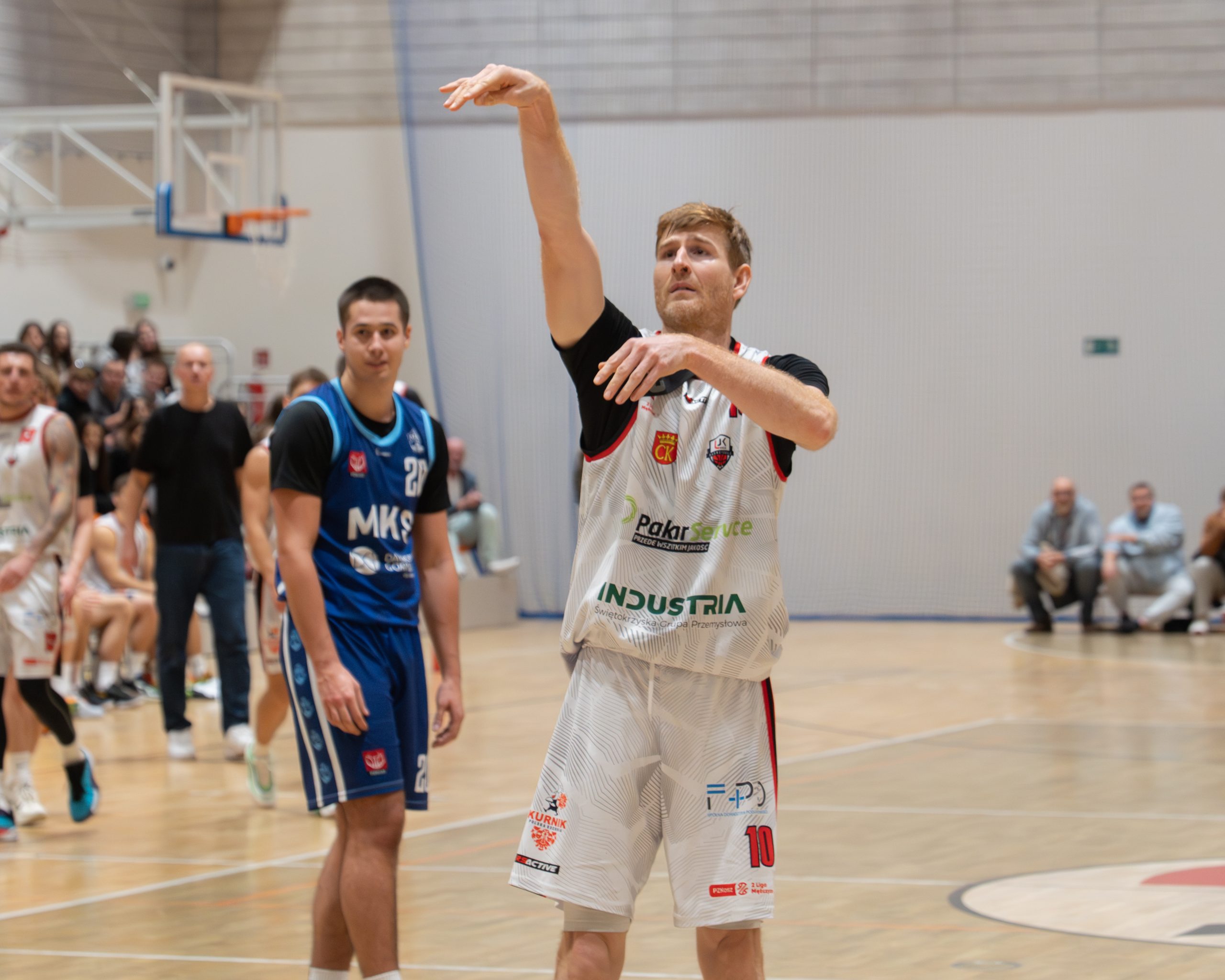Koszykarze UJK Kielce wrócili na zwycięski szlak. W rozegranym awansem meczu 12. kolejki podopieczni trenera Rafała Gila zwyciężyli na własnym parkiecie z MKS II Dąbrowa Górnicza 92:86. Najskuteczniejszym zawodnikiem kielczan był Wojtek Pisarczyk, który zdobył 21 punktów.