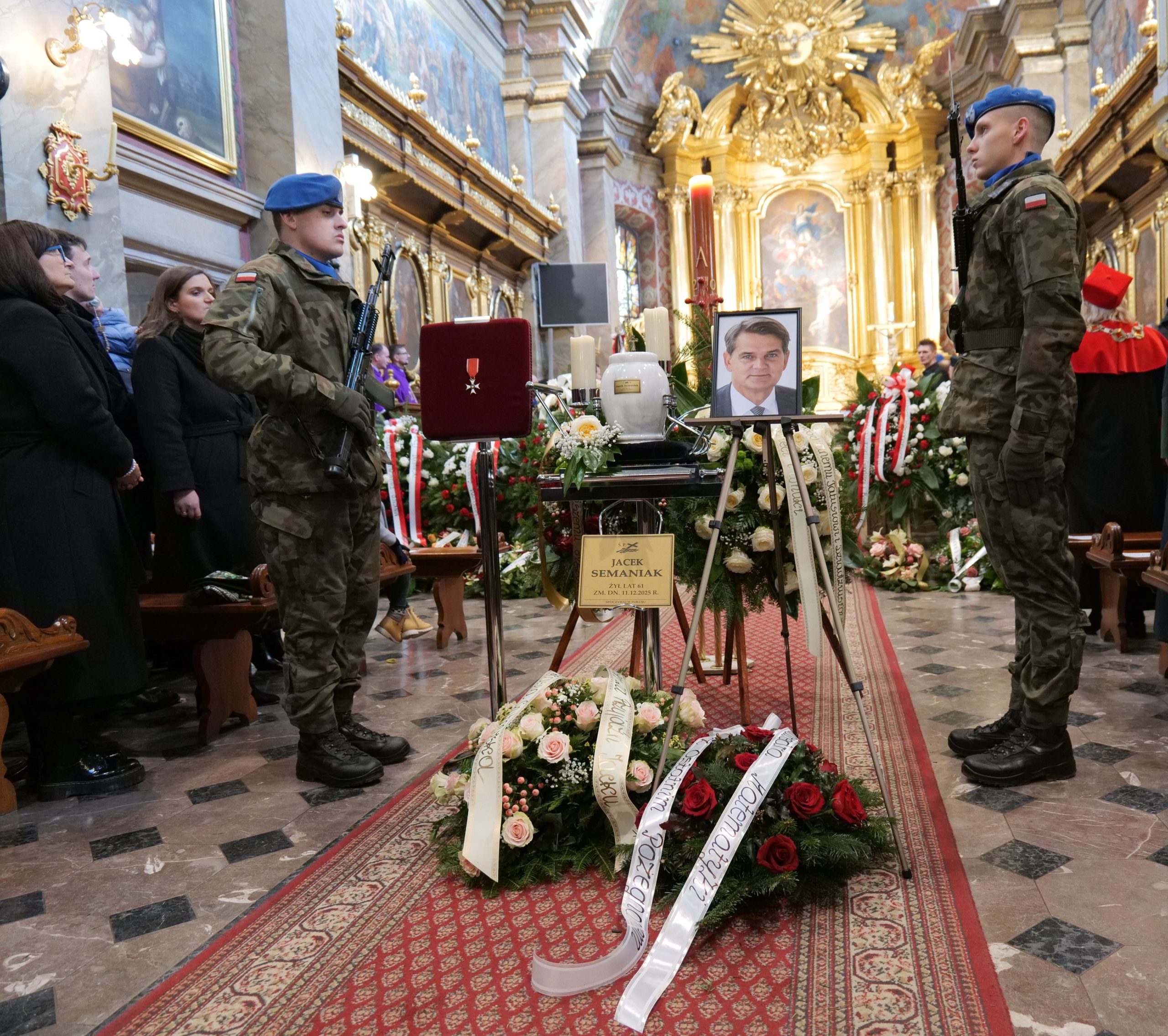 Orszak rektorski przeszedł ulicami Kielc do Katedry, gdzie odbyły się uroczystości pogrzebowe prof. Jacka Semaniaka. Pogrzeb miał charakter państwowy, towarzyszyła mu asysta wojskowa. Profesor Jacek Semaniak został odznaczony pośmiertnie Krzyżem Kawalerskim Orderu Odrodzenia Polski przez Prezydenta RP. Order odebrała Jagoda Semaniak, żona profesora. Eucharystię odprawił biskup kielecki dr Jan Piotrowski, koncelebrowało ją wielu kapłanów w tym biskup Marian Florczyk i biskup Andrzej Kaleta.