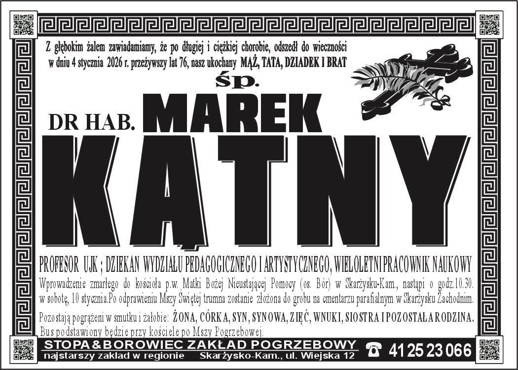 Z bólem musimy przekazać kolejną smutną informację. W wieku 77 lat zmarł dr hab. Marek Kątny, prof. UJK, który w latach 2008-2012 był dziekanem ówczesnego Wydziału Pedagogicznego i Artystycznego.