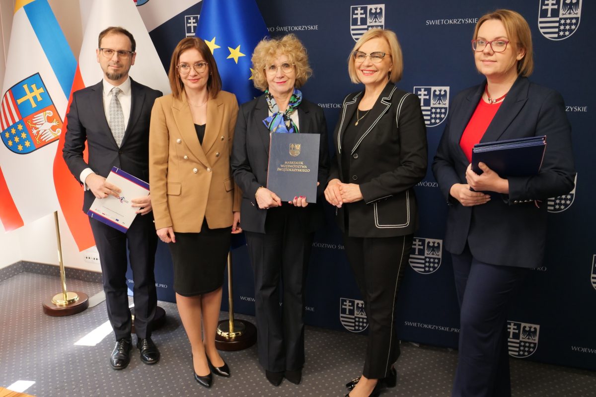 W siedzibie urzędu marszałkowskiego Certyfikat Ośrodka Innowacji z rąk Renaty Janik, marszałka województwa świętokrzyskiego odebrały prof. dr hab. Beata Wojciechowska, rektor Uniwersytetu Jana Kochanowskiego i Izabela Zielińska, kierownik Działu Innowacji i Transferu Technologii UJK.