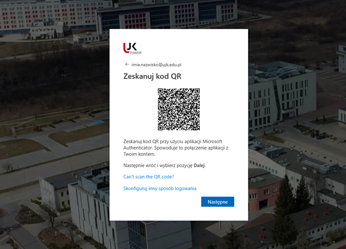 Wpisz ponownie adres e-mail w formacie: imie.nazwisko@ujk.edu.pl Kliknij Dalej.