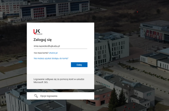3. Przejście do logowania Microsoft 365 (UJK)