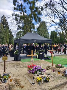Pogrzeb odbył się 17 kwietnia i miał charakter świeckiej uroczystości. Z ramienia Uniwersytetu Jana Kochanowskiego uczestniczyli w nim dr hab. Jerzy Gapys, prof. UJK, dziekan Wydziału Humanistycznego oraz dr hab. Małgorzata Krzysztofik, prof. UJK, wicedyrektor do spraw naukowych w Instytucie Literaturoznawstwa i Językoznawstwa. W imieniu naszej Uczelni złożyli wieniec na grobie wybitnego pisarza.